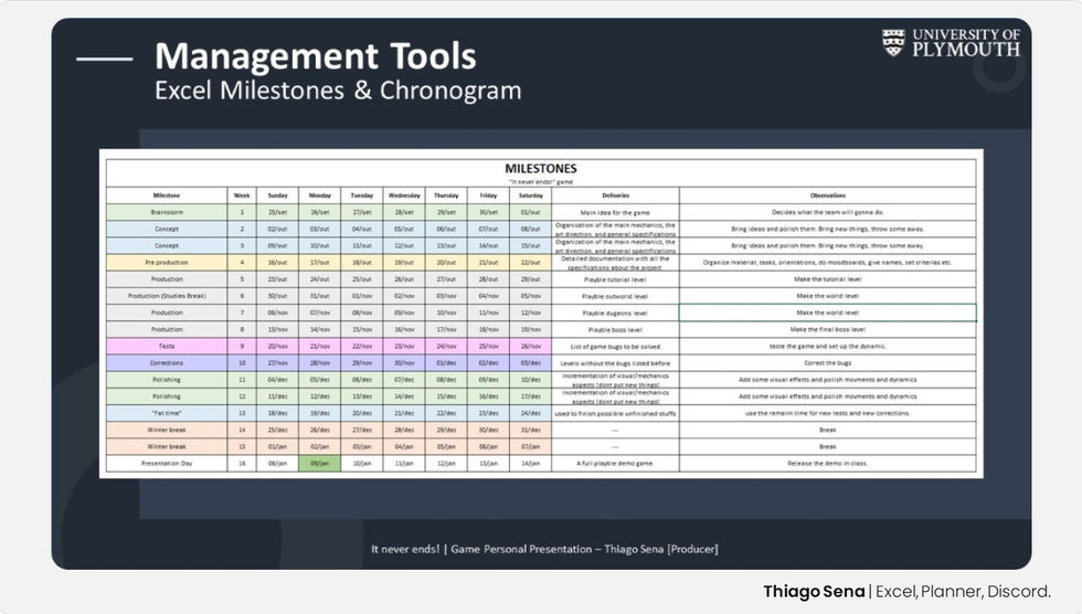 After this work, I felt I have improved my producer but oriented for games. I worked for the first time almost remote with the team. I also improved my methodology to deal with the team, how to communicate better and how to register everything.